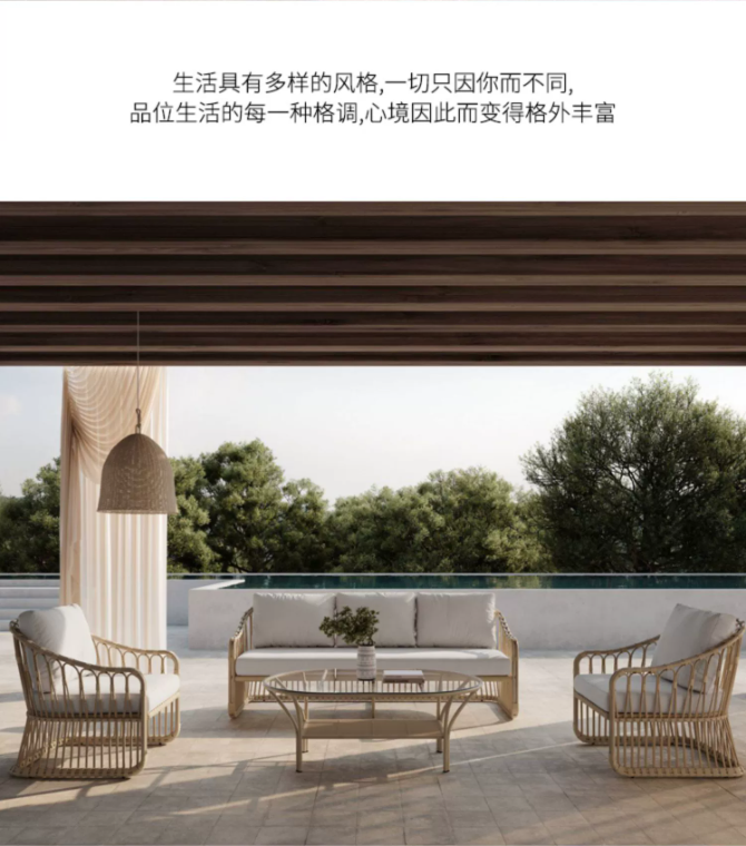 高端户外实木桌椅组合别墅庭院花园休闲家具露台防雨防晒藤编沙发